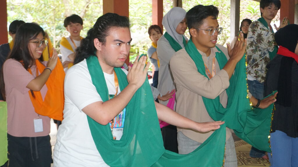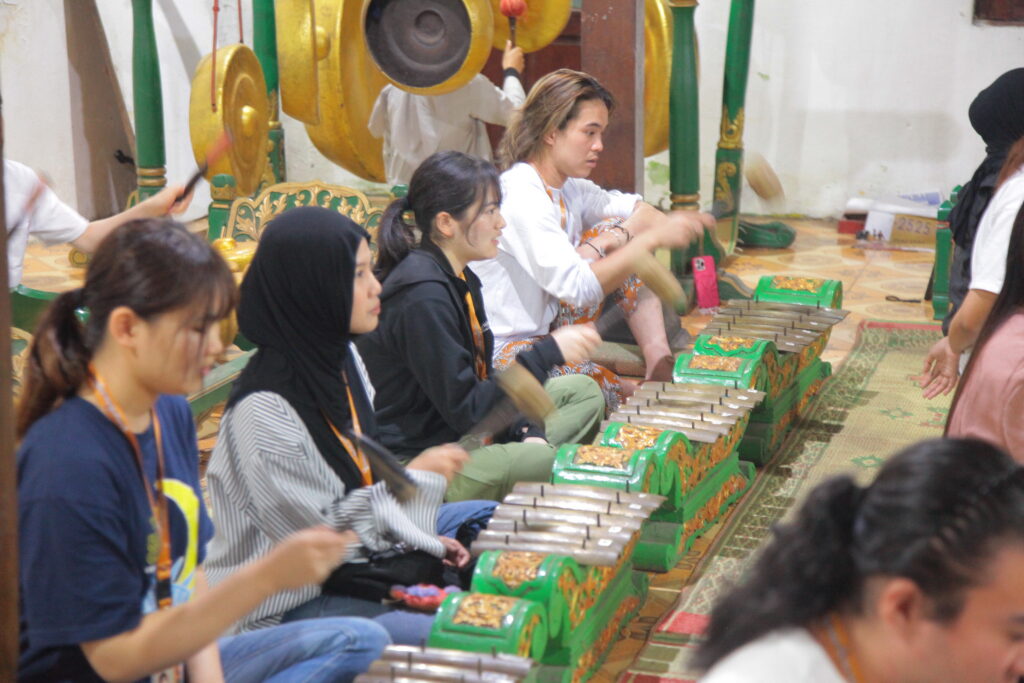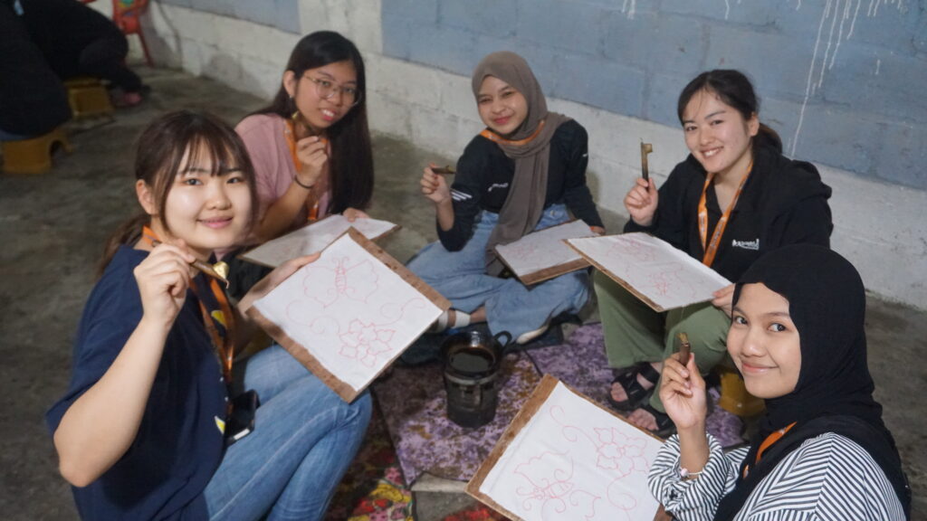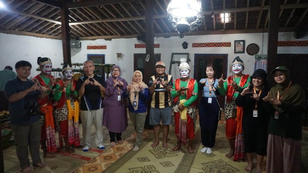 During the visit, participants were guided to explore various aspects of village life in Pentingsari. They experienced traditional farming practices such as plowing rice fields using buffaloes and planting rice seedlings, providing direct insight into local agricultural culture. In addition, participants took part in traditional arts and crafts activities, including playing gamelan instruments, learning batik making using canting tools, and practicing traditional dances.