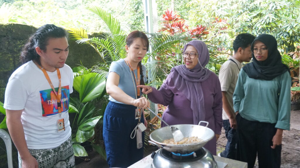 The program also introduced participants to local community-based industries. They observed the mushroom cultivation and processing into crispy mushroom snacks, learned about traditional coffee production, and participated in the preparation of herbal drinks made from local ingredients. These activities highlighted the role of natural resources and traditional knowledge in supporting village livelihoods.