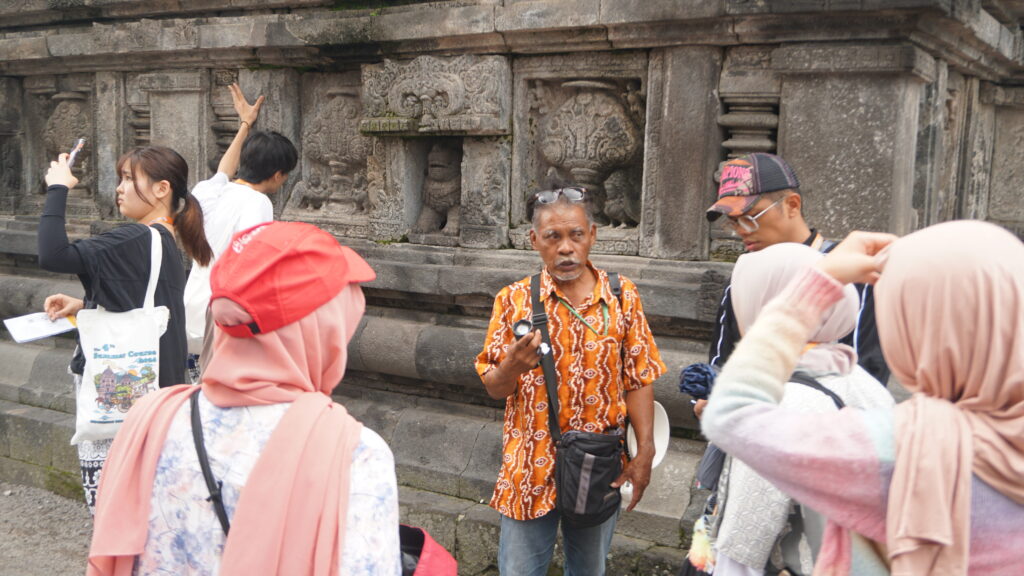 At Prambanan Temple, participants explored the largest Hindu temple complex in Indonesia, which was built in the 9th century during the Mataram Kingdom period. The visit introduced participants to the historical and architectural significance of the temple complex, including the three main temples dedicated to Shiva, Vishnu, and Brahma, as well as the surrounding temples that symbolize the Hindu cosmology of Mount Meru. Participants also learned about the detailed stone reliefs depicting scenes from the Ramayana epic, along with statues of Hindu deities that reflect the spiritual and cultural values of the ancient Javanese civilization.