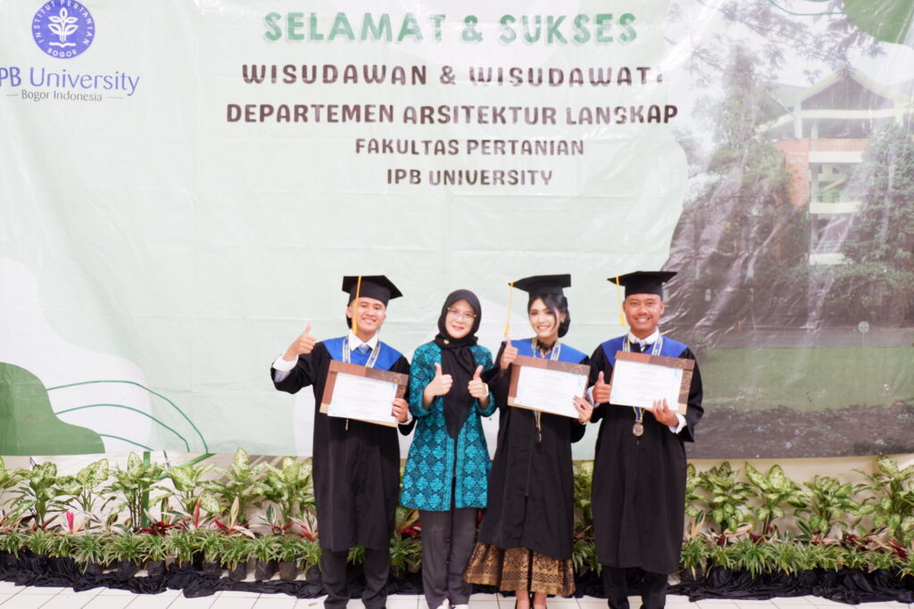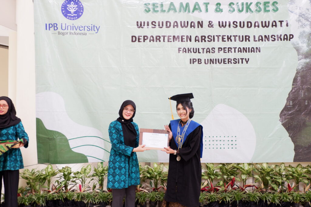 Pada jenjang Sarjana (S1), predikat wisudawan terbaik diraih oleh Amelia Bayu Ramadhani dari Program Studi Arsitektur Lanskap dengan predikat Dengan Pujian (Cum Laude) dan Indeks Prestasi Kumulatif (IPK) 3,70. Prestasi tersebut mencerminkan dedikasi dan konsistensi akademik yang tinggi selama masa studi.