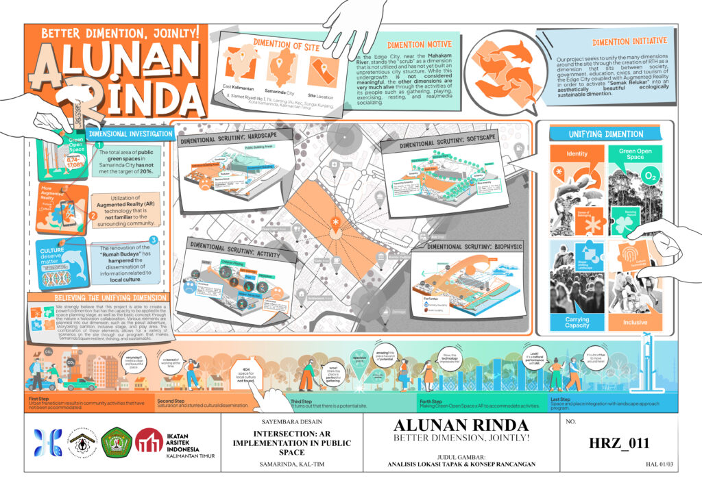 Melalui “Alunan Rinda”, ketiganya menyoroti pentingnya kehadiran ruang terbuka hijau (RTH) yang tidak hanya nyaman dan ramah untuk publik, tetapi juga mampu menjembatani masyarakat dengan teknologi masa kini. Konsep ini menjadi jawaban atas minimnya ruang kota yang mengintegrasikan kearifan lokal dan Augmented Reality (AR) sebagai media interaksi.