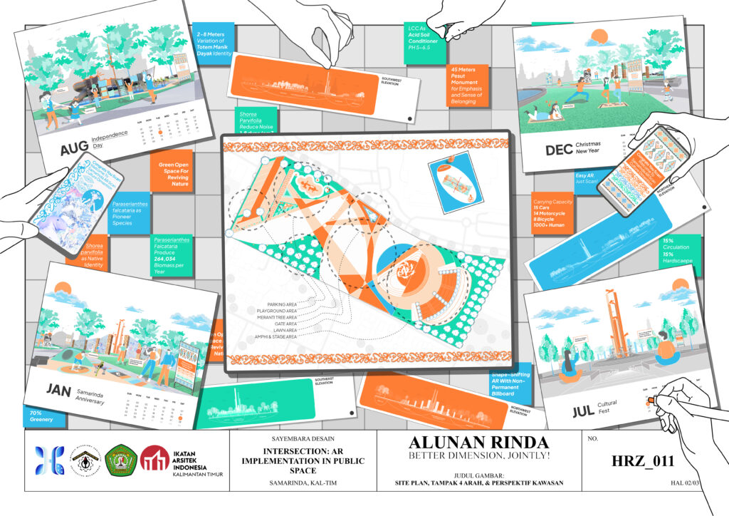 Mereka adalah Rico Agustiano (A4401211043), Hafiz Agam Hidayat (A4401211052), dan Dewanta Aufa Ahya Rochyanto (A4401211085), yang menggagas karya berjudul “Alunan Rinda”, sebuah konsep pembaruan alun-alun Kota Samarinda menjadi ruang publik yang inklusif, edukatif, dan berteknologi tinggi.