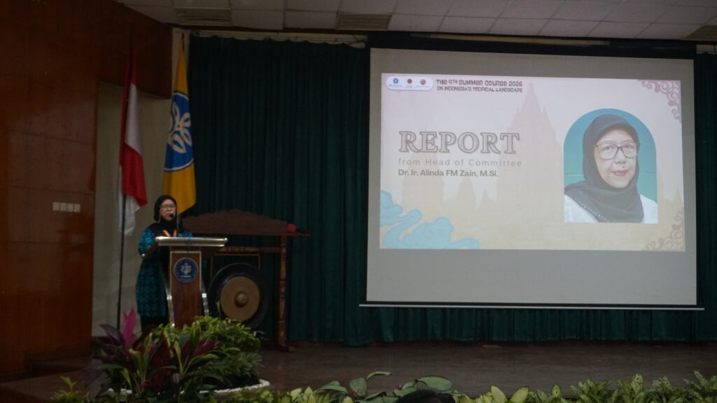 The Head of Committee, Dr. Ir. Alinda FM Zain, M.Si., delivered the committee report, emphasizing that The 4th Summer Course on Indonesia Tropical Landscape aims to strengthen the international academic atmosphere, sustain collaboration with partner universities, and create new academic partnerships.